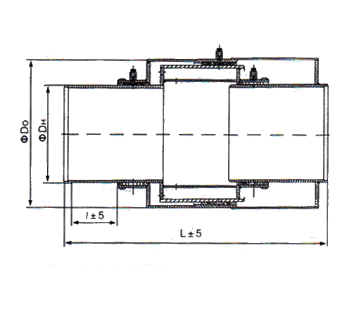 結構特點是:采用三個填料密封箱;準確的設計一個封閉流體環(huán)腔,利用流體靜壓力產(chǎn)生對兩側管道的拉緊力,抵消管道拐彎或盲端處固定支架上作用的流體推力。這種結構,由于流體直通式流懂,所以流體阻力損失很小,安裝長度短。