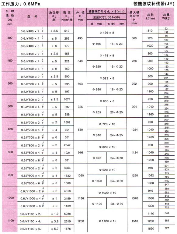 鉸鏈波紋補償器(JY)參數2