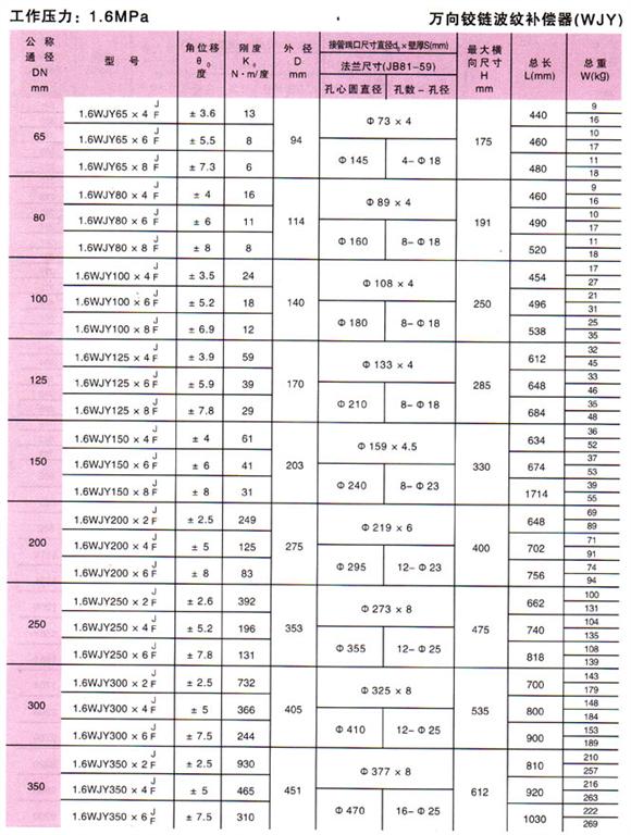 萬向鉸鏈波紋補償器(WJY)參數6