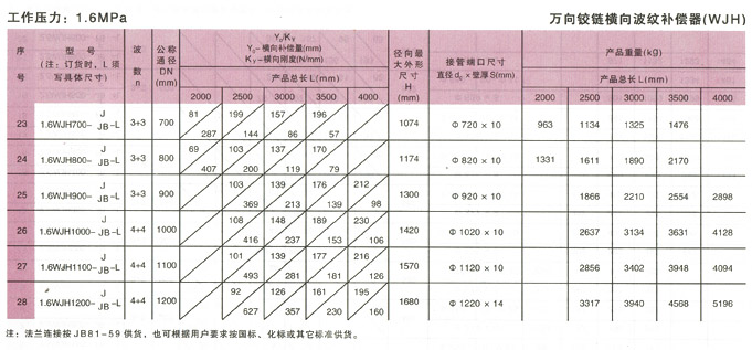 萬向鉸鏈橫向波紋補償器(WJH)產品參數5