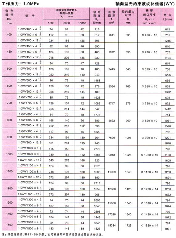 無(wú)約束波紋補(bǔ)償器(WY)參數(shù)4
