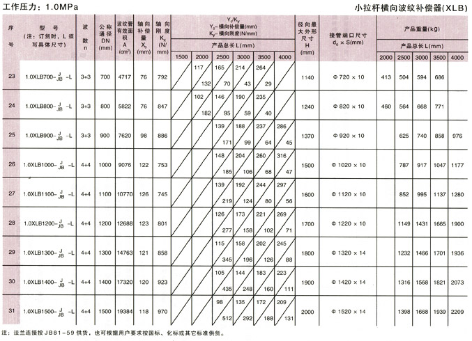 小拉桿橫向波紋補償器(XLB型)產品參數4