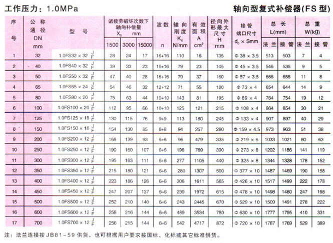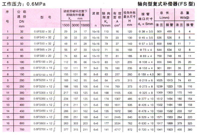 軸向型復(fù)式波紋補(bǔ)償器(FS型)參數(shù)1